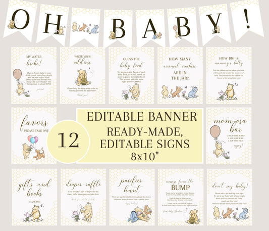 Classic Winnie the Pooh Baby Shower Sign Bundle