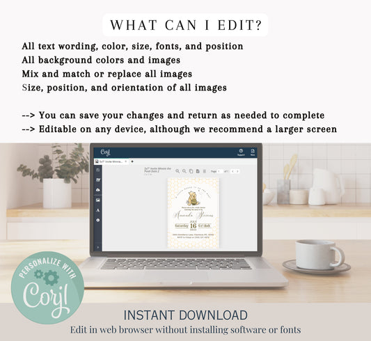 Winnie the Pooh Baby Shower Invitation Editable Template